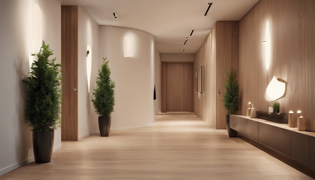 Aby skutecznie oświetlić swój korytarz, połącz bezpieczeństwo i styl. Użyj ciepłego światła (poniżej 3000K) dla przytulnego klimatu i dąż do około 100-150 lumenów na metr kwadratowy dla widoczności. Rozważ zastosowanie opraw takich jak kinkiety, oświetlenie wpuszczane lub lampy wiszące, aby poprawić estetykę i wyeliminować cienie. Dla długich lub wąskich przestrzeni wybierz oświetlenie szynowe lub warstwuj różne źródła światła, aby utrzymać jasność. Nie zapomnij o inteligentnych rozwiązaniach, takich jak czujniki ruchu, dla wygody i efektywności energetycznej. Udoskonal swoją przestrzeń dzięki tym pomysłom, a wkrótce odkryjesz więcej inspiracji do stworzenia pięknie oświetlonego korytarza.